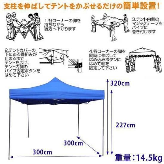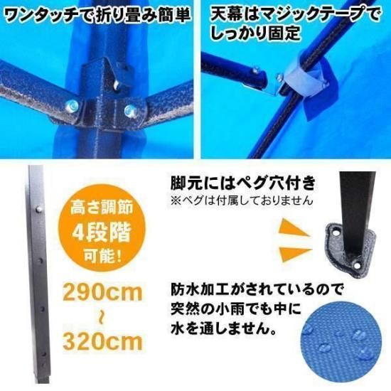 【法人・店舗限定】ワンタッチ タープテント 大型 3m 3m [S-3X3] テント 高さ調節 簡単設置 折り畳み 日よけ アウトドア キャンプ BBQ イベント 運動会 出店 業務用 防災