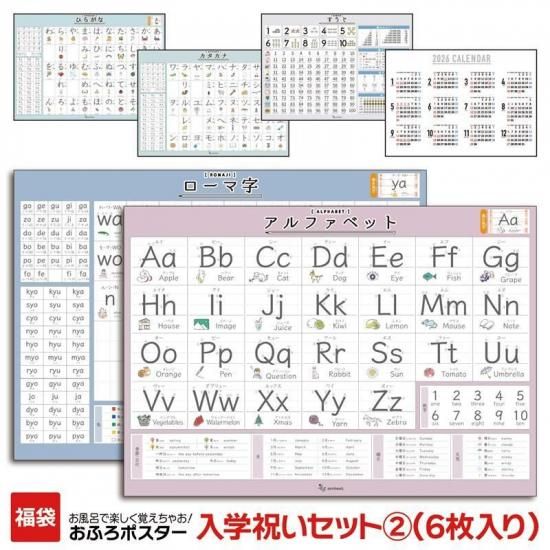 ■内 容:カレンダー1枚、ひらがな1枚、カタカナ1枚、すうじ1枚、アルファベット1枚、ローマ字1枚