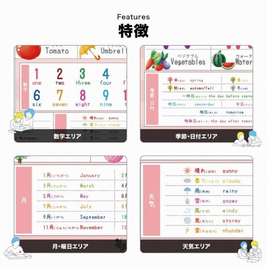 アルファベット編では数字、季節・日付、月・曜日、天気のフィールドで、