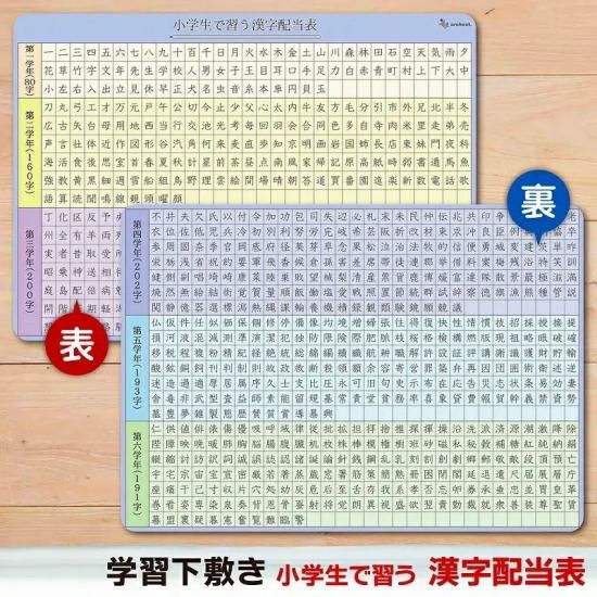 下敷き 小学1年生〜6年生で学習する漢字配当表 1026文字 A4