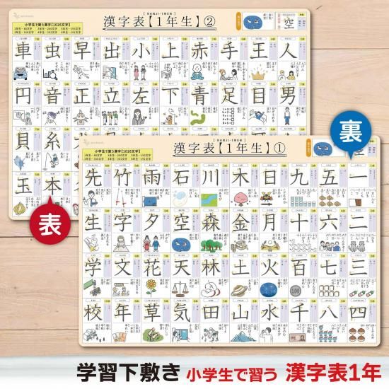 小学校1年生の漢字80字を表・裏に見やすくデザインした下敷きです。部首、書き順、画数、音読み・訓読み、使用例とともに、イラストでわかりやすく整理しました。
