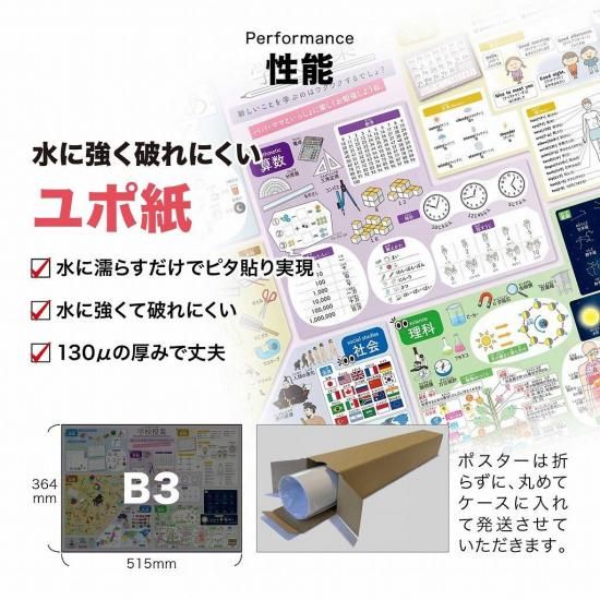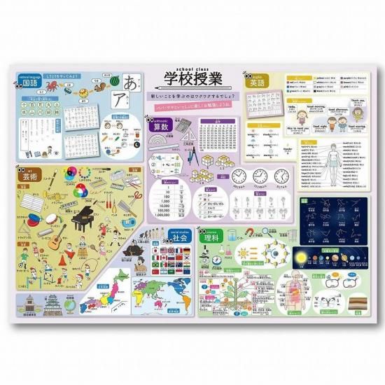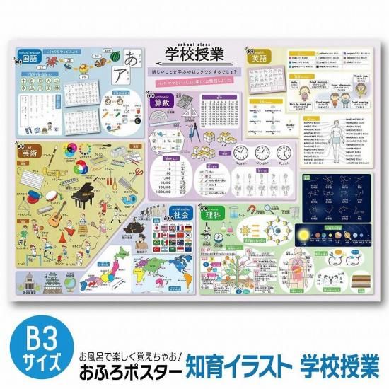 小学校の入学祝いやお受験対策におすすめのイラストで覚える学校授業のお風呂ポスターです。