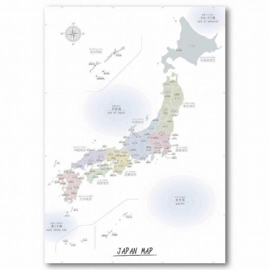 都道府県名、地方名、県庁所在地名、海洋名を表記しています。