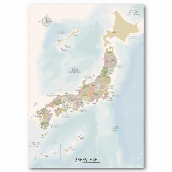 都道府県名、地方名、県庁所在地名、海洋名を表記しています。