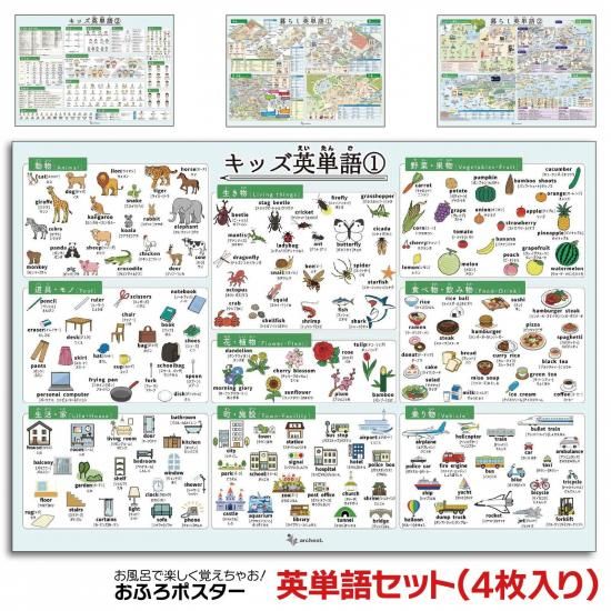 お風呂ポスター 英単語セット (4枚入り) B3サイズ