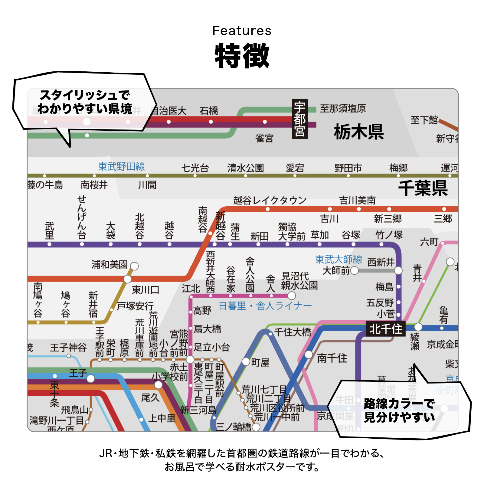 お風呂ポスター【首都圏路線図】の特徴