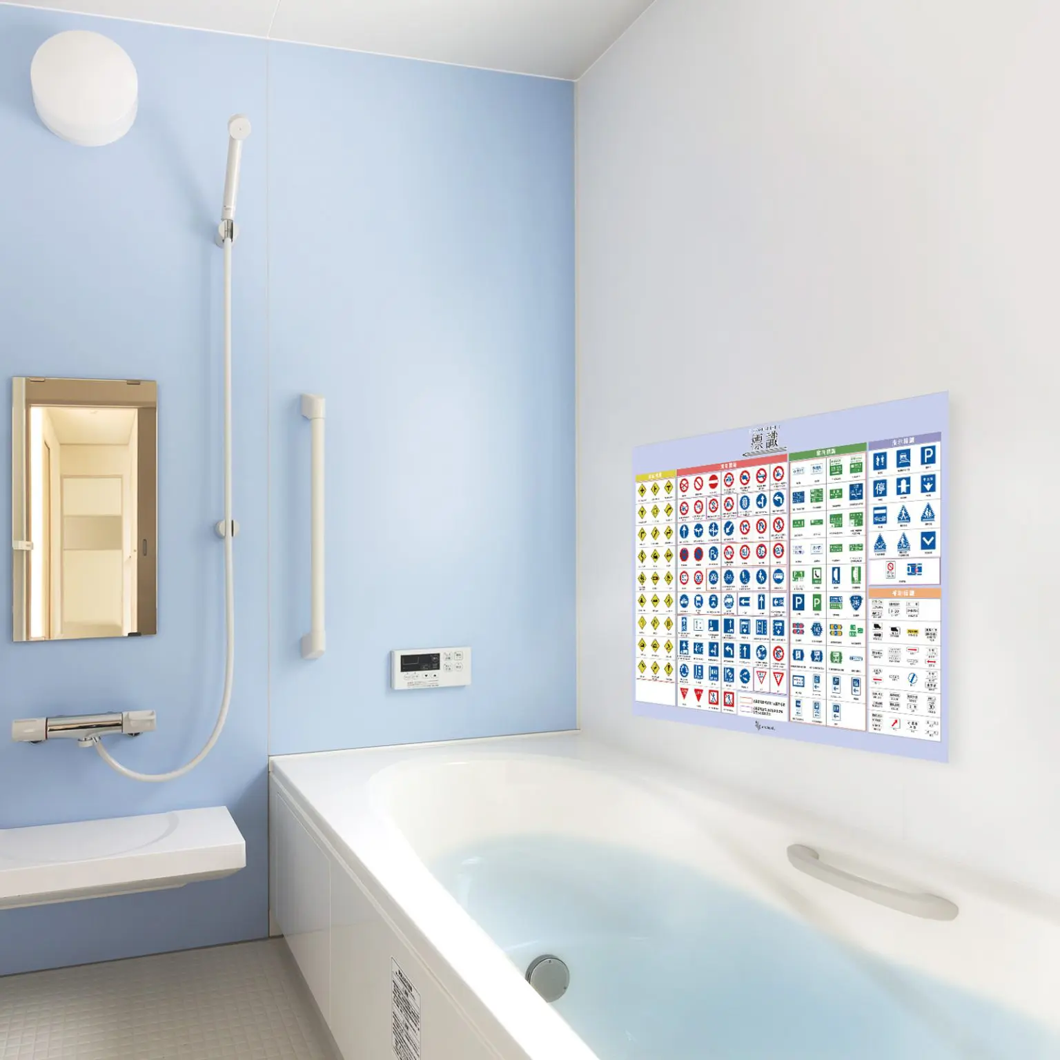 お風呂ポスターで入浴タイムに「ながら学習」!デザインはインテリア性を意識してスタイリッシュな雰囲気に仕上げました。視覚的にも見やすく情報を素早く把握できるよう工夫されています。知育教材、自動車やバイク免許取得に向けた教習対策としてもお役立てください。