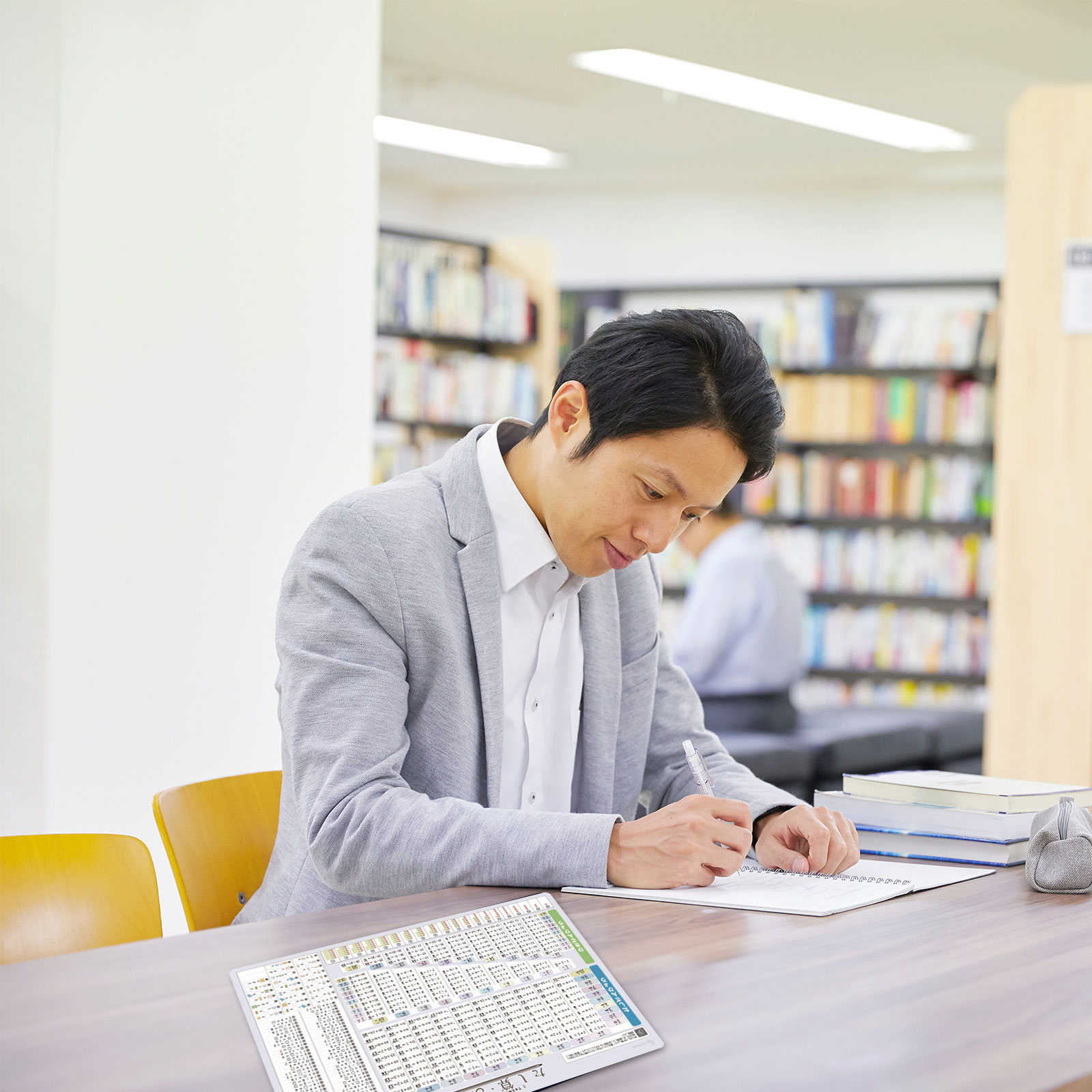勉強道具として必ず使う下敷きだから、情報を詰め込んでも邪魔にならず、机の上のスペースを有効に活用できます。
