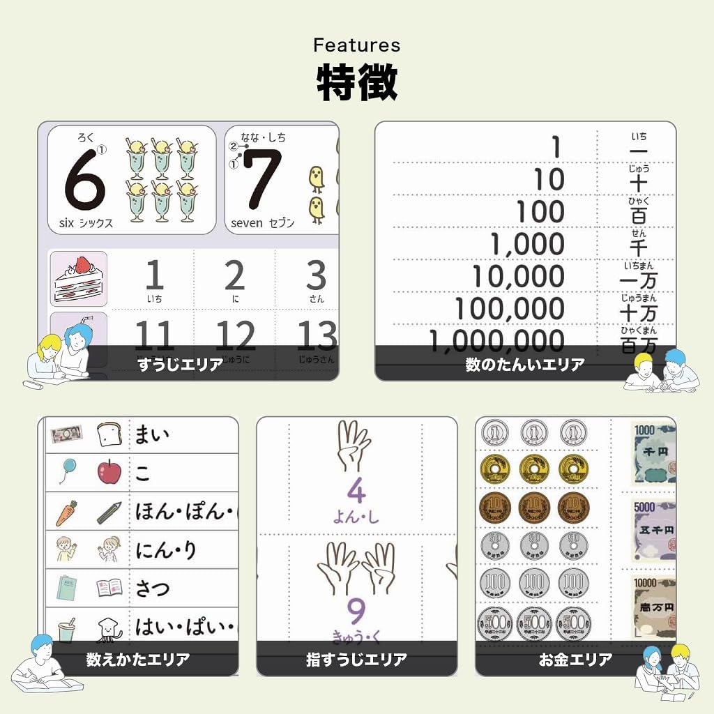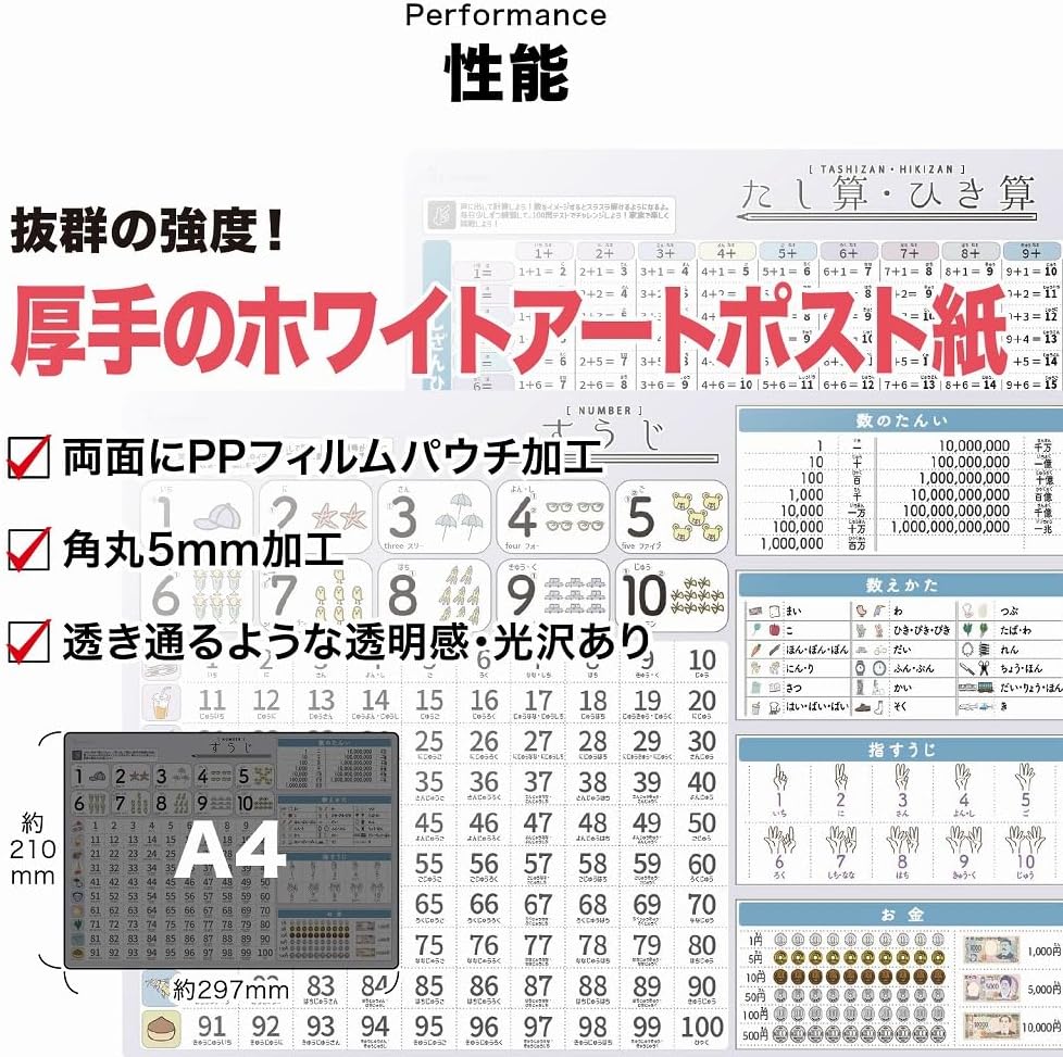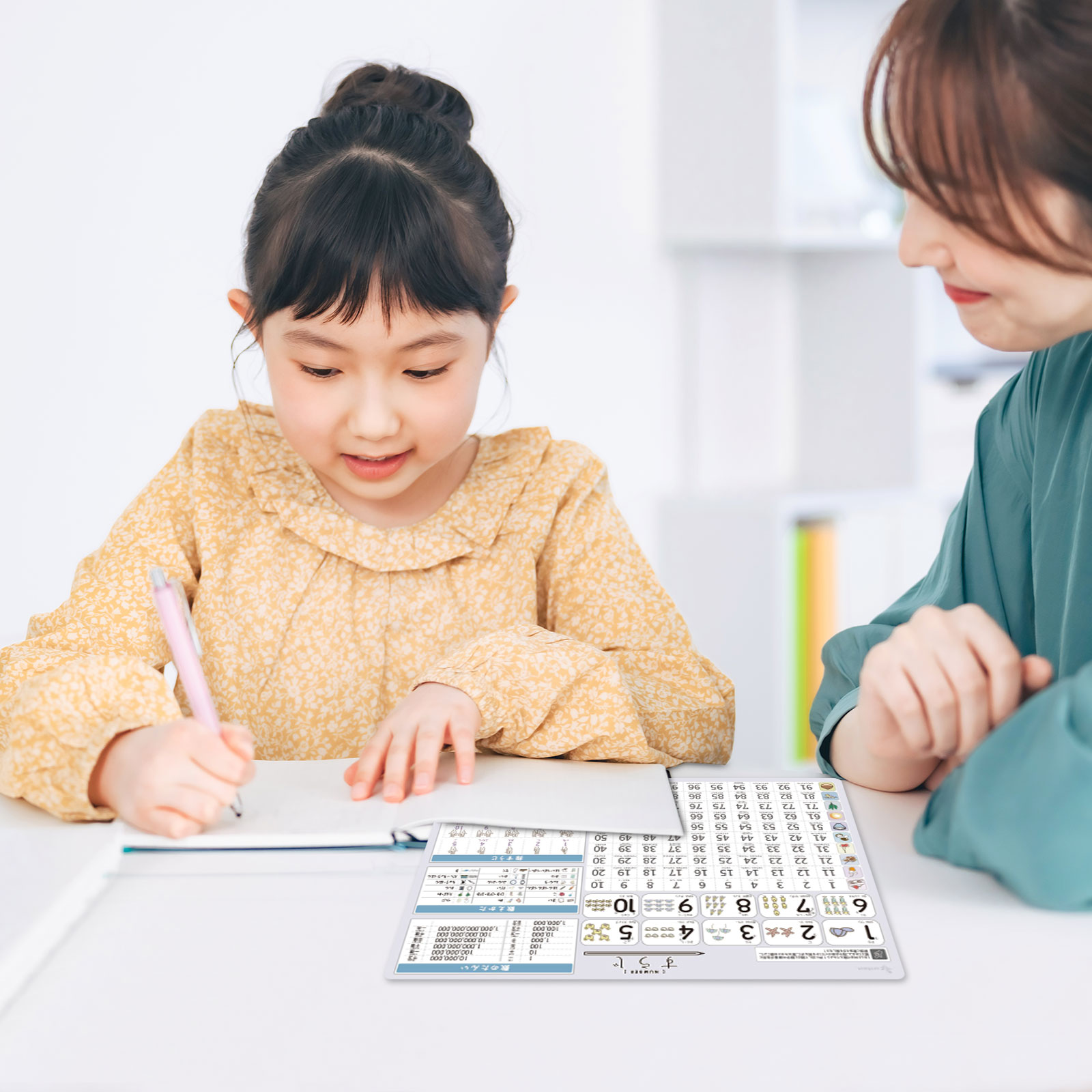 表面は、1~100までの数字を学べる下敷きです。数字の形や読み方を一覧で整理し、数の大小や並びを直感的に理解できる構成になっています。色分けやイラストで数のイメージを視覚的に捉えられ、はじめての数あそびや数感覚の育成にも最適です。家庭学習や授業での活用、毎日の練習や復習にも便利で、算数への興味を自然に育む一枚です。